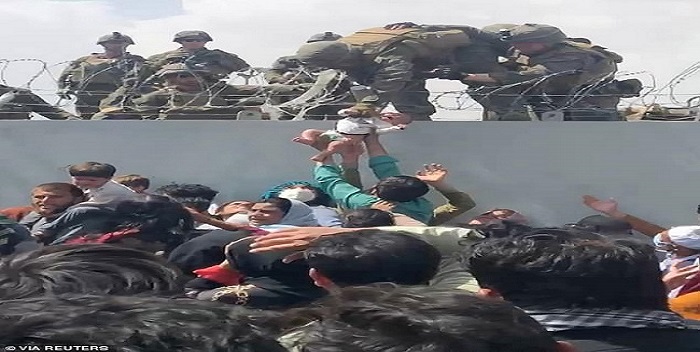 इस बीच काबुल एयरपोर्ट की 18 फीट ऊंची दीवार पर खड़े अमेरिकी सैनिक के हाथ में टंगी एक बच्ची की काफी चर्चा हो रही है। एयरपोर्ट पर खड़े लोग अपने बच्चों को नाटो सैनिकों के हवाले कर रहे हैं। उनका कहना है कि अगर अमेरिकी या नाटो सैनिक हमें नहीं लेकर जा सकते तो हमारे बच्चों को लेकर जाएं। ये लोग अपने बच्चों को जबरदस्ती एयरपोर्ट की सुरक्षा चारदीवारी के पार पहुंचा रहे हैं।